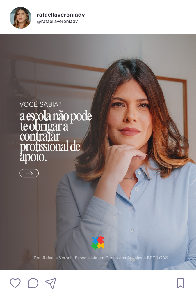 Criar o conteúdo da Rafaella Veroni exigiu um olhar sensível sobre a comunicação jurídica. Ao contrário do discurso intimidador ou distante que normalmente domina o Direito, Rafaella desejava exatamente o oposto: uma comunicação acessível, humana e prática, capaz de orientar famílias de pessoas autistas e PCD que geralmente chegam às redes sociais em busca de respostas urgentes e acolhimento.